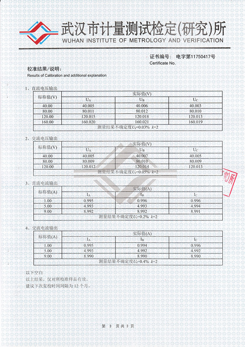 交流電壓輸出 輸出精度  0.2級