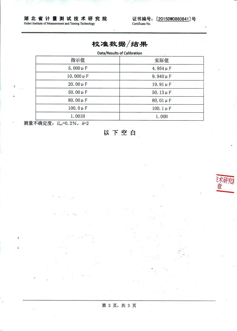 電感器感抗分量: 10mΩ ~ 200kΩ 誤差值: ±1%;