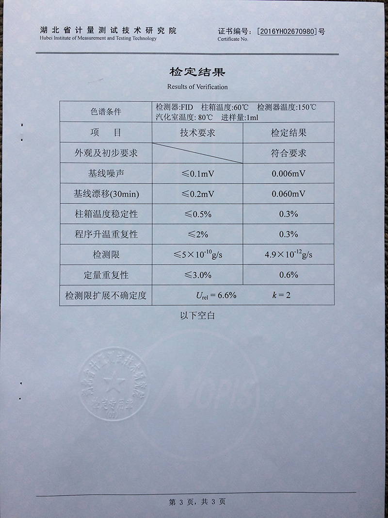 TCD檢測器靈敏度 S值≥10000mv.ml/mg(苯),最高可達12000 mv.ml/mg(苯)